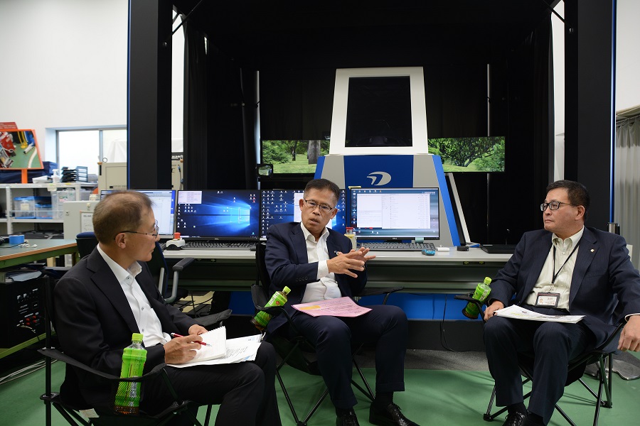 今回の SPECIAL 対談は、製造業に対して最高の開発環境を提供するトヨタテクニカルディベロップメント株式会社 (https://www.toyota-td.jp/、以下 TTDC) を訪問し、再現性の高い反力と高応答な映像機能を備える最先端のドライビングシミュレータ 「V-TiPS」 を体験させていただきました。その後、同社を率いる代表取締役社長執行役員 香川 佳之 様と、大豊精機株式会社 (http://www.tsk.taihonet.co.jp/、以下 大豊) 代表取締役社長 真野 恭一 様をお迎えして、これから製造業の開発や製造手法についてディスカッションを行いました。お二人とも、トヨタ自動車で部長をしていたという背景から、特に自動車の開発という観点からお話を伺いました。